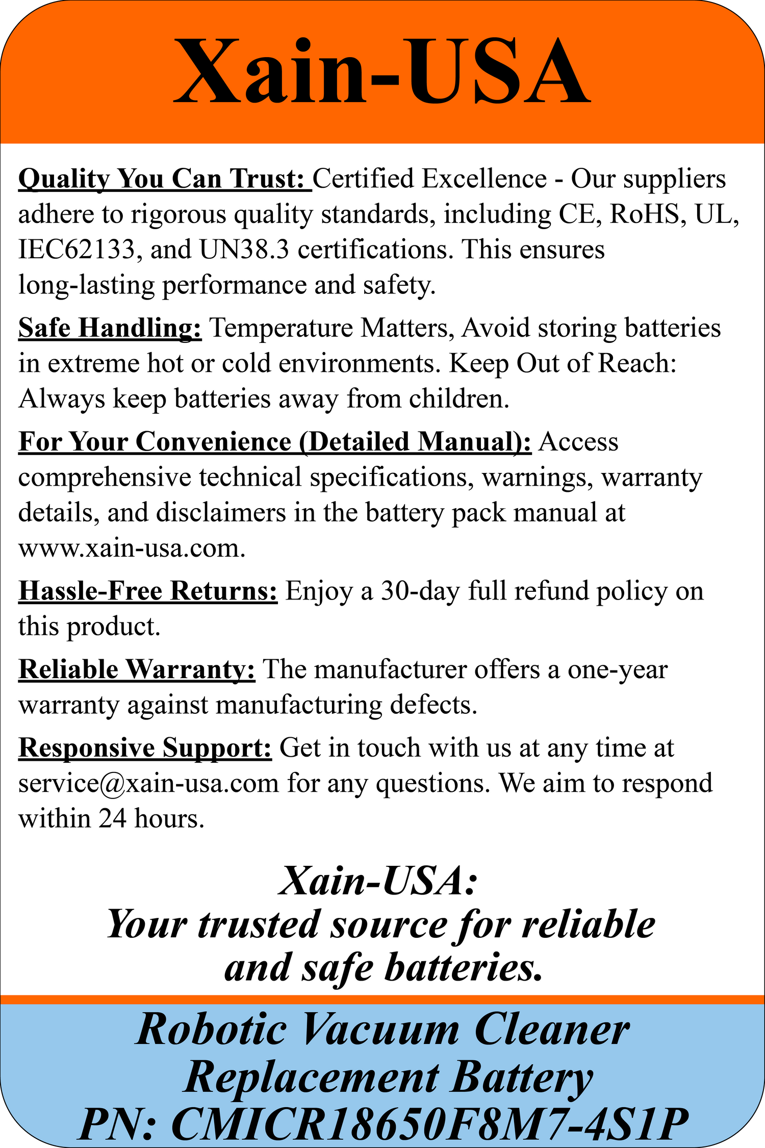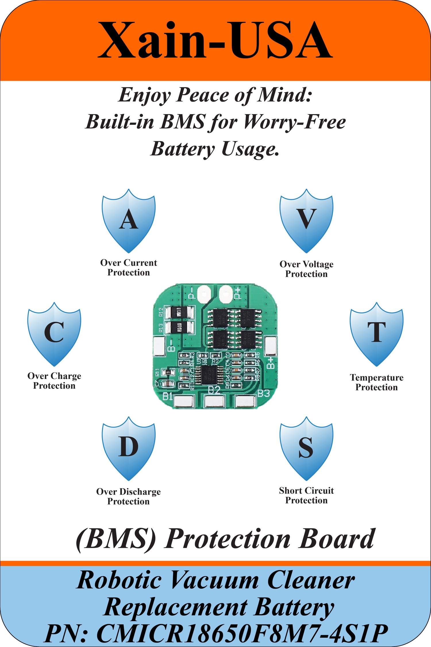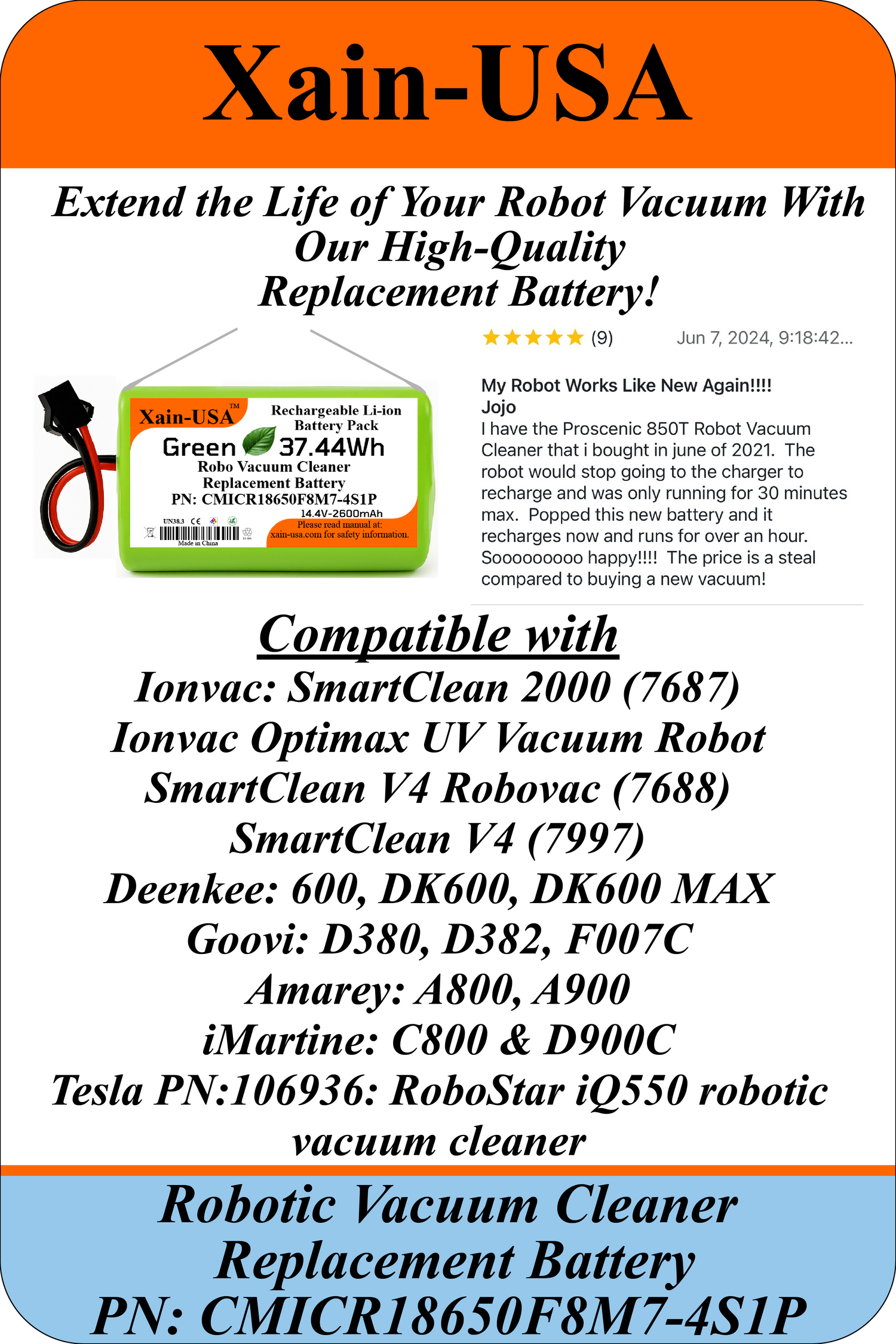 Replacement Battery for Amarey A800 and Amarey A900, Robot Vacuum Cleaners 14.4V - 2600mAh (37.4Wh) with Built-in Battery Management System (BMS)