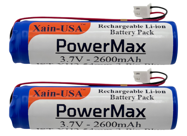 (2-Pack) 3.7V 2600mAh Li-ion Battery Pack w/ JST-XH 2P Plug for RC Cars, Lights