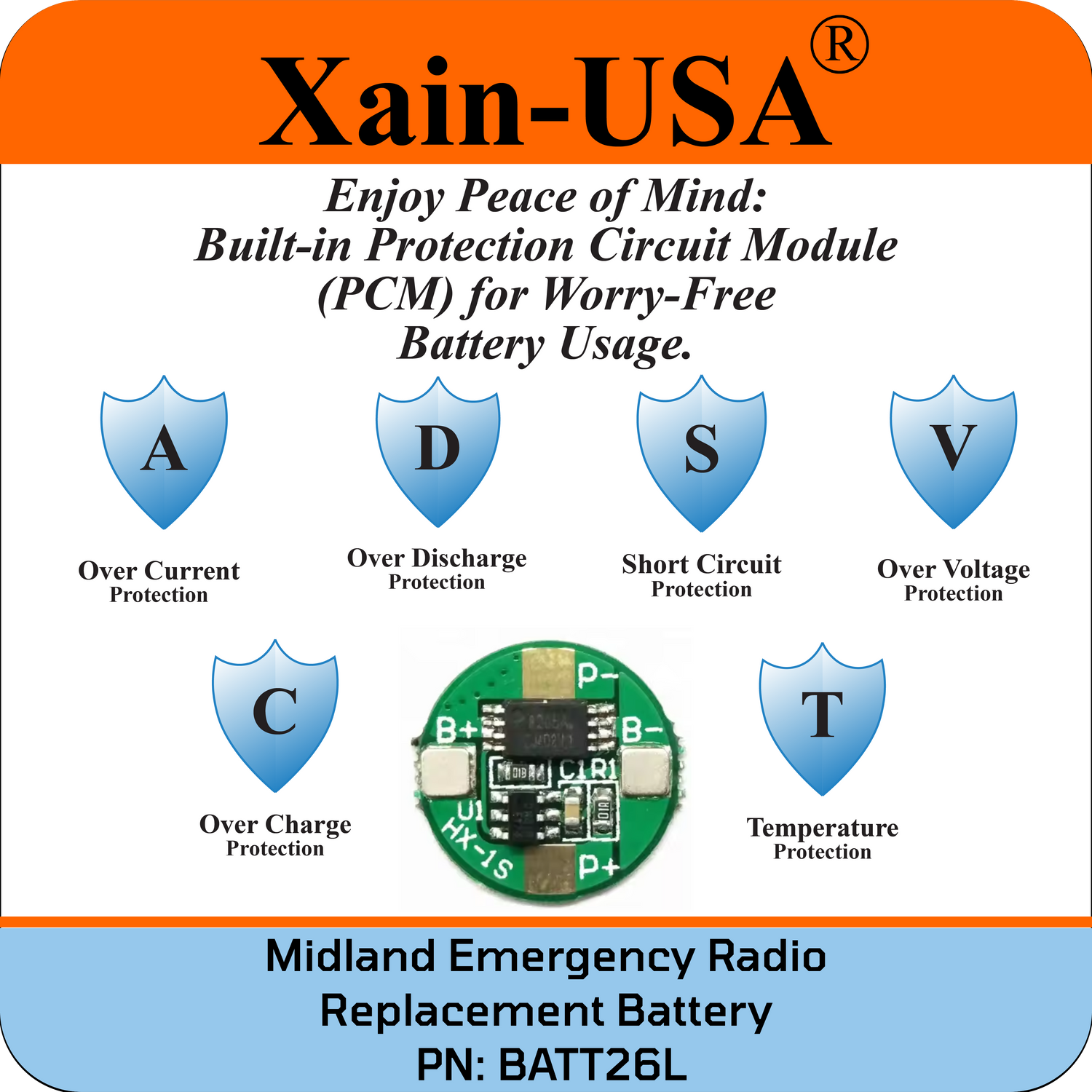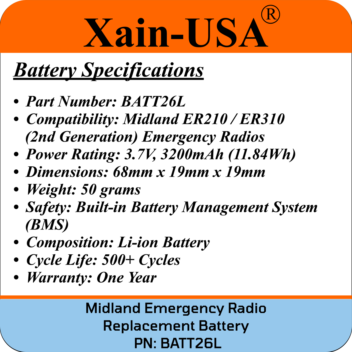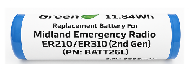 Long Lasting 3200mAh Replacement Battery for Midland Emergency Radio ER210/ER310 (2nd Gen) / PN: BATT26L.