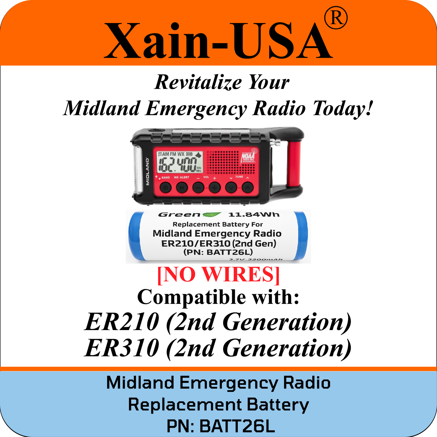 - Compatibility: Midland Emergency Radio ER210 / ER310 (2nd Generation)