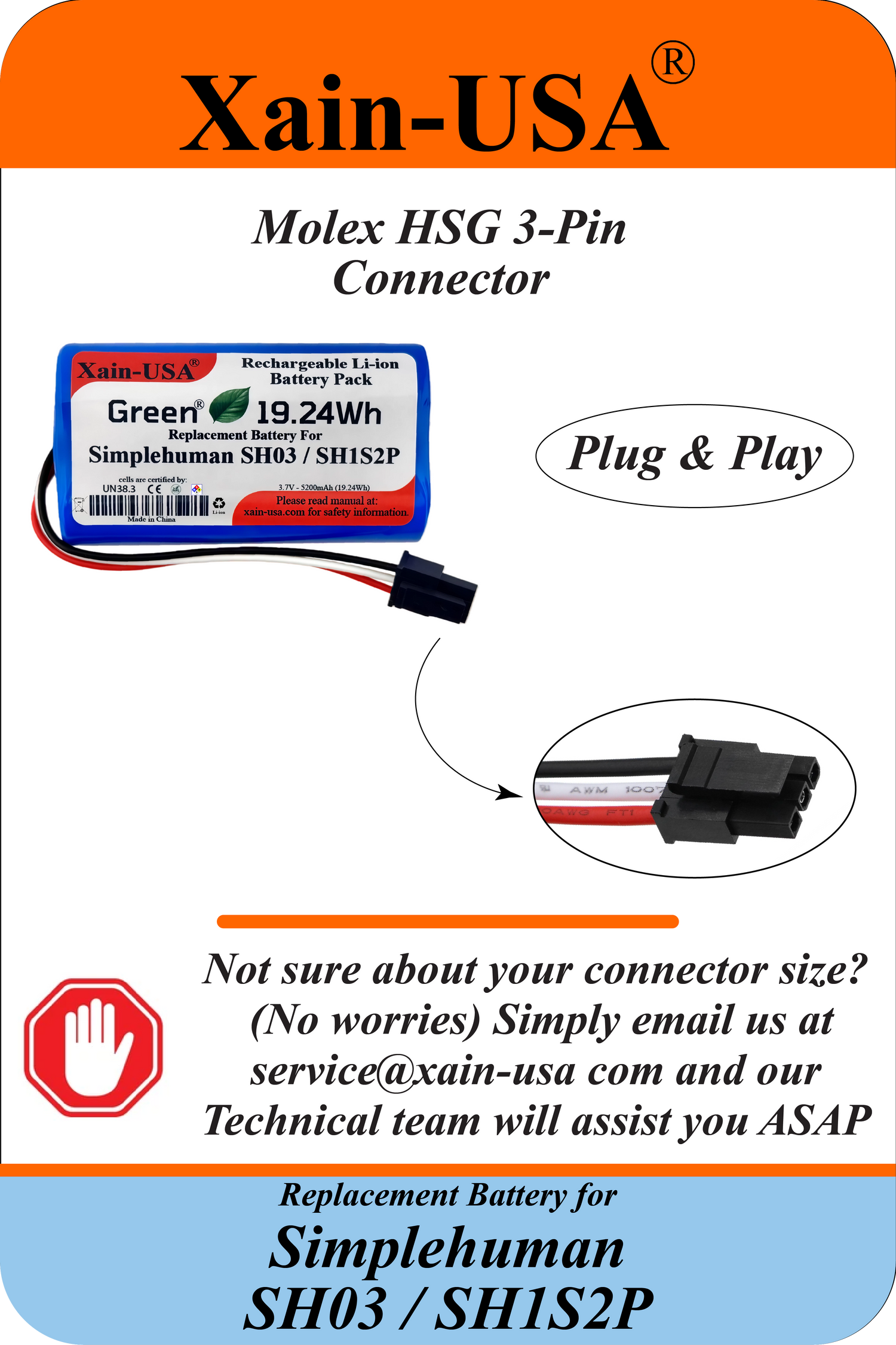 Replacement Battery for Simplehuman SH03 SH1S2P – 3.7V 5200mAh Long Lasting Pack