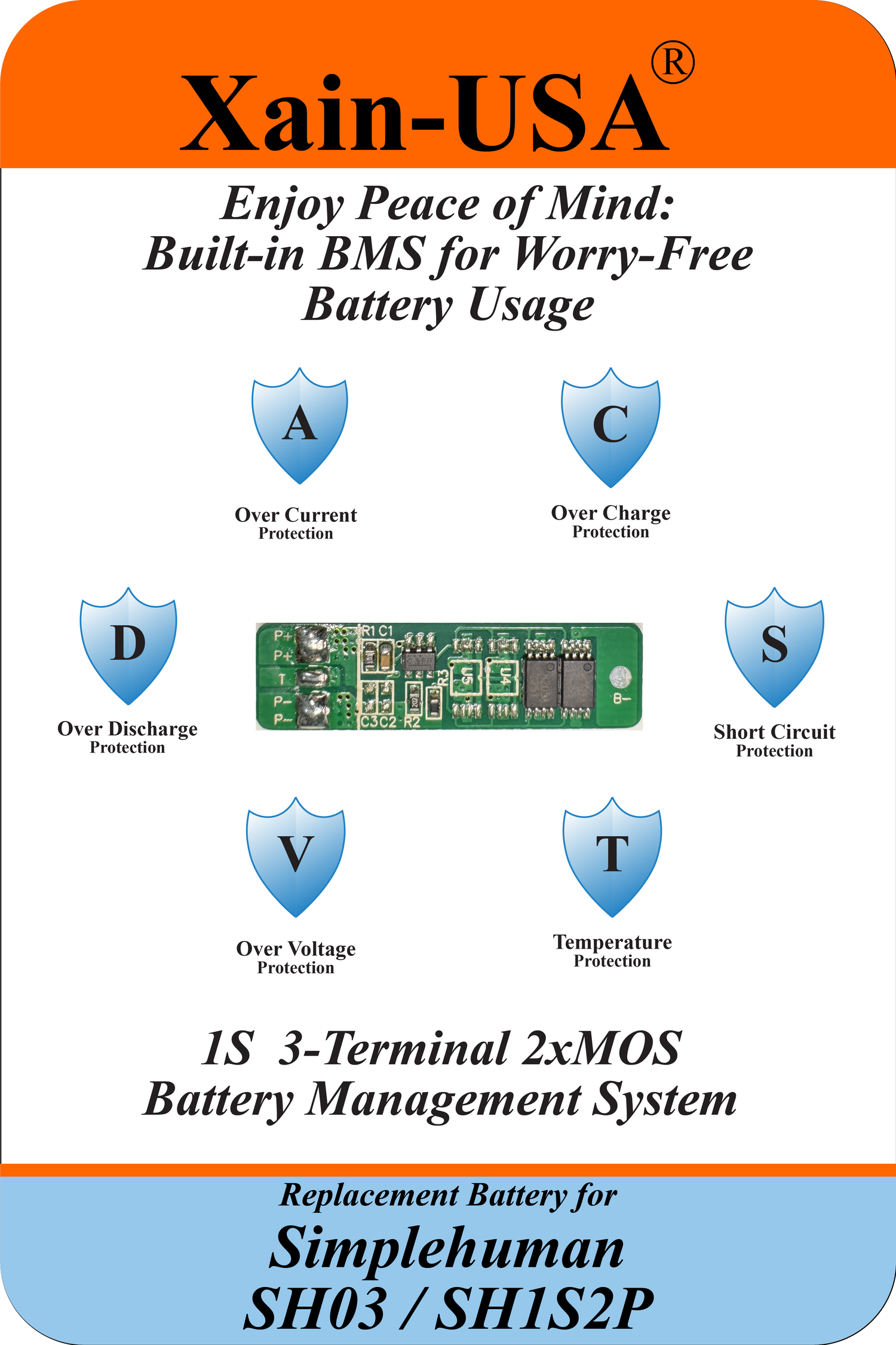 High-Capacity Replacement Battery for Simplehuman SH03, SH1S2P – 3.7V 5200mAh (19.24Wh) with Built-in BMS – Lasts 2X Longer Than Standard Packs
