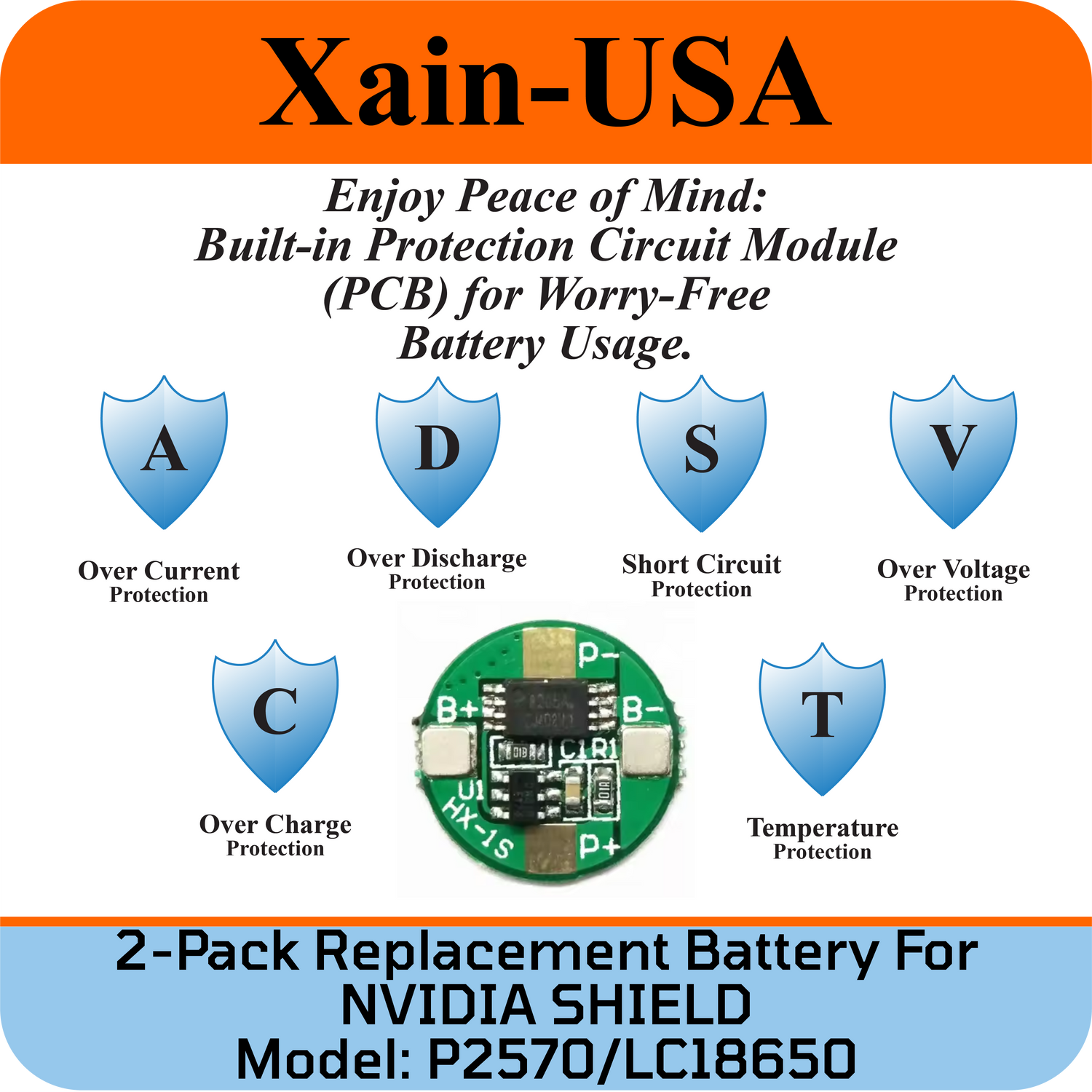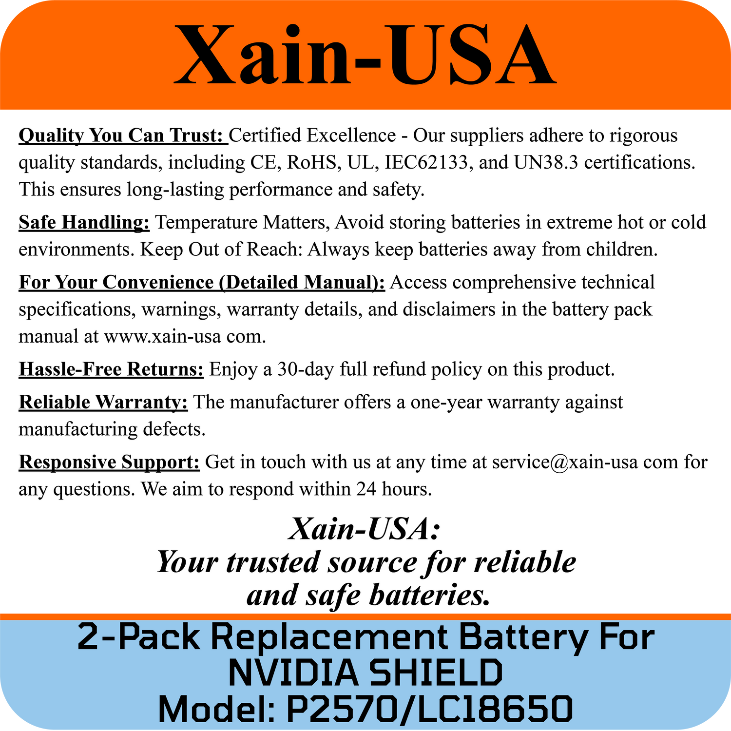 2-Pack: Replacement battery for NVIDIA P2570 Shield, Shield TV 1st Generation, PN: LC18650, 2600mAh