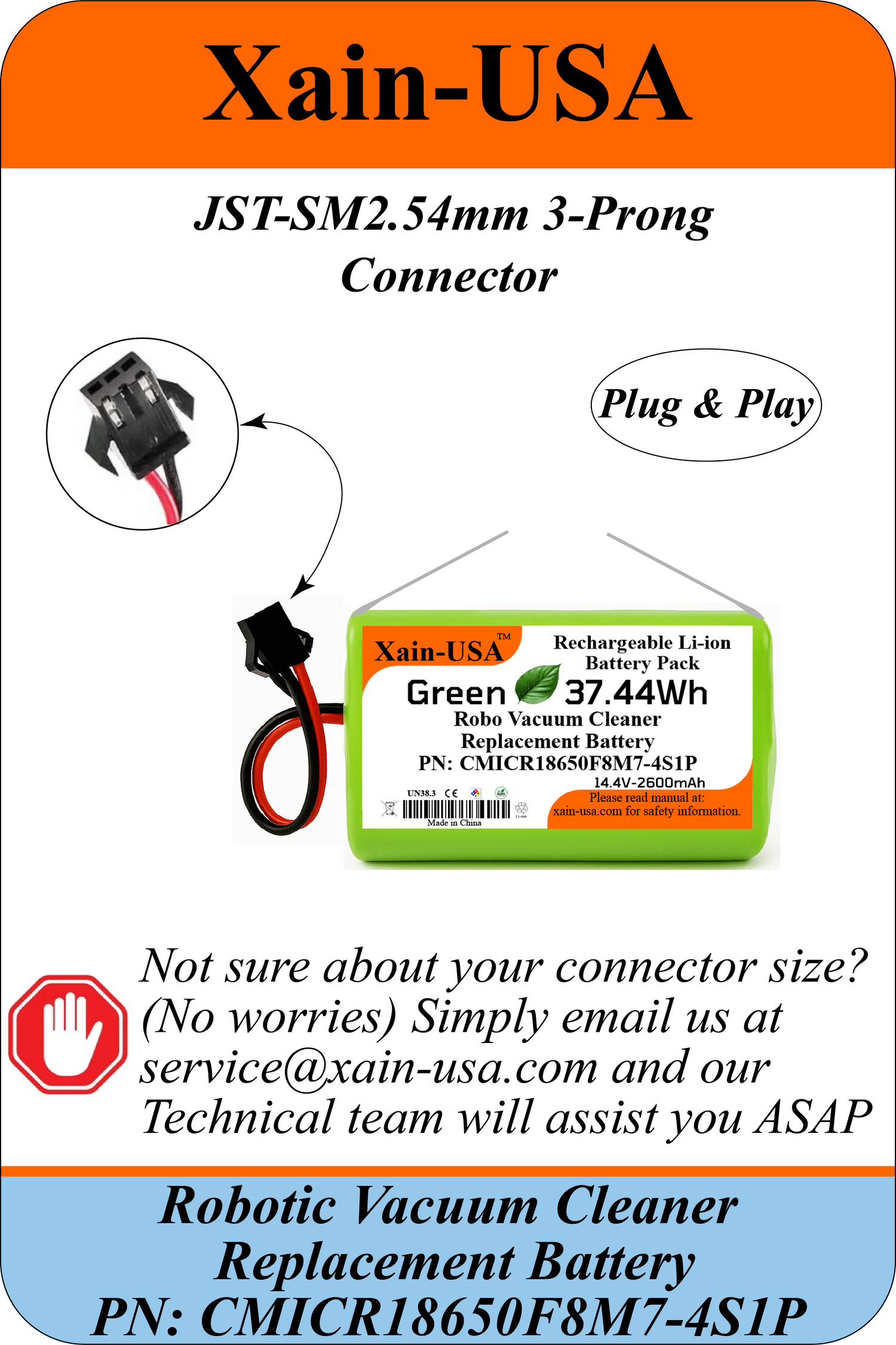 Replacement Battery for Lubluelu SL60, SL60D, SL60 Plus, SL68 Robot Vacuum Cleaners 14.4V - 2600mAh (37.4Wh) with Built-in Battery Management System (BMS)